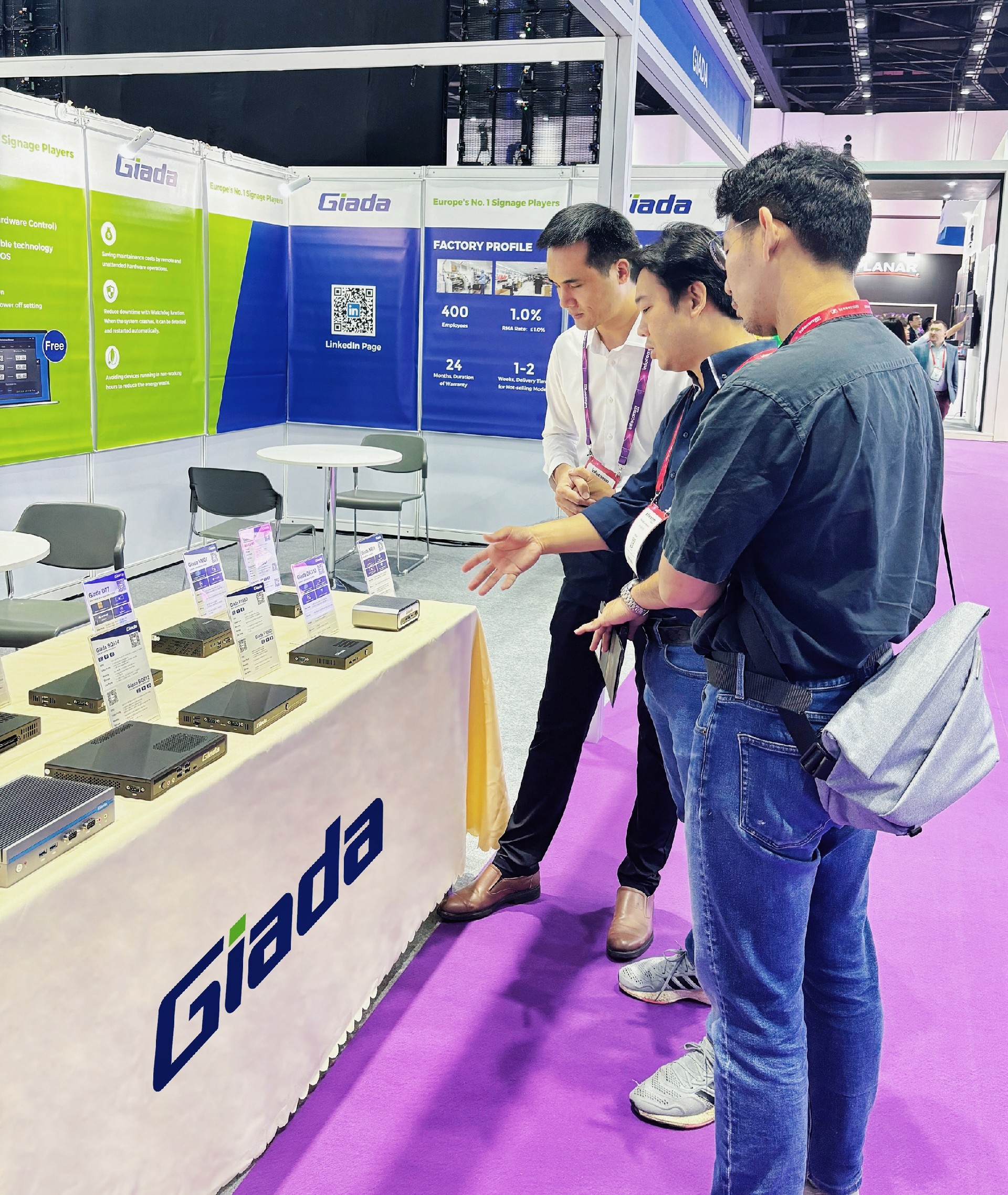 除此之外,Giada南宫NG·28(中国)相信品牌力量科技展示一系列数字标牌播放器、户外嵌入式整机、OPS/SDM及嵌入式主板等明星产品,并带来一系列量身定制的解决方案,以满足东南亚地区的具体需求。