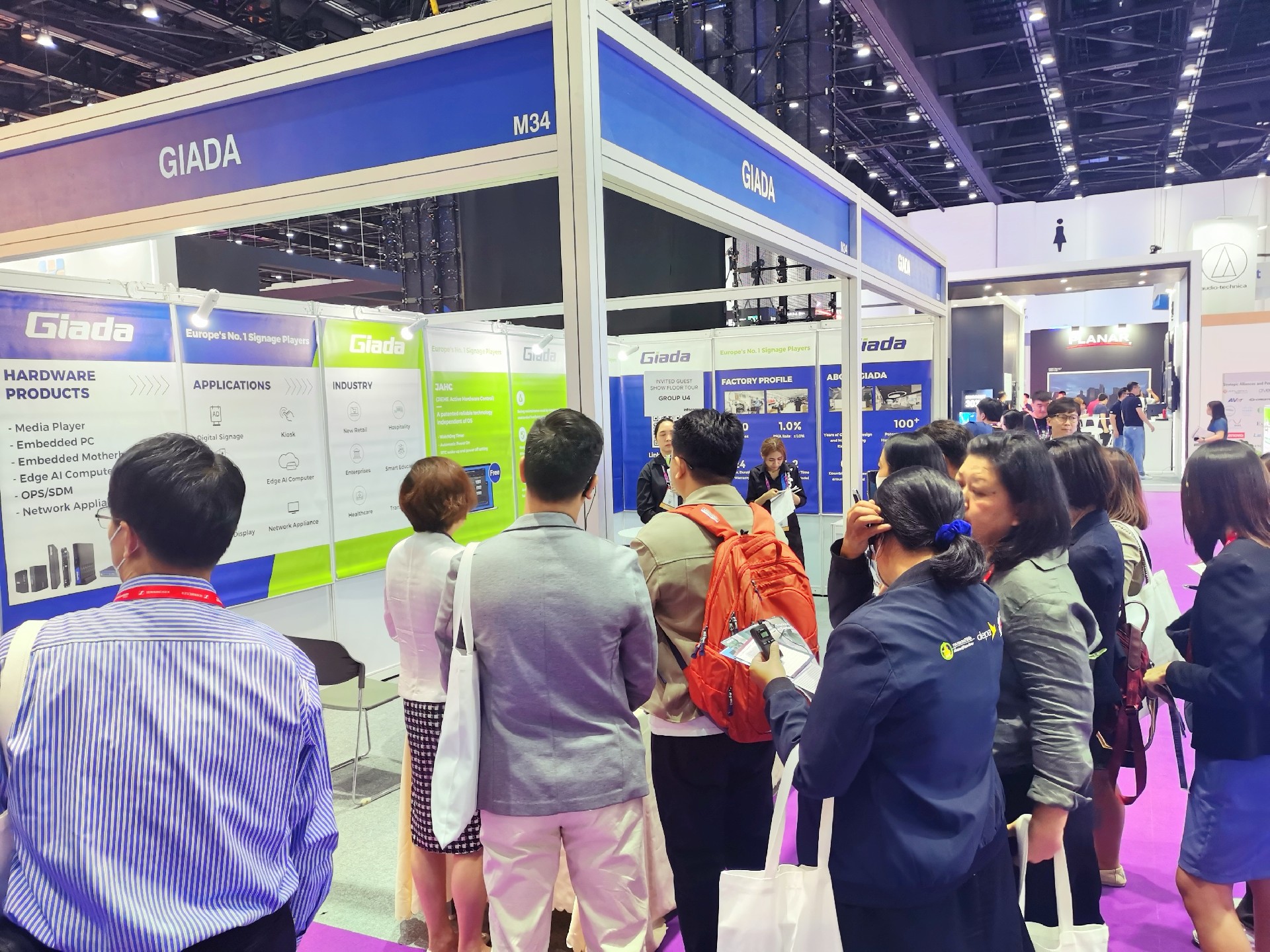 展会期间,Giada的展台现场气氛火爆,气氛异常热烈,吸引了来自东南亚多个国家的观众驻足。在现场你可以看到观众正在详细查看产品规格书以及产品细节,并针对某些特定需求向专家提出问题,为他们提供可行的解决方案。