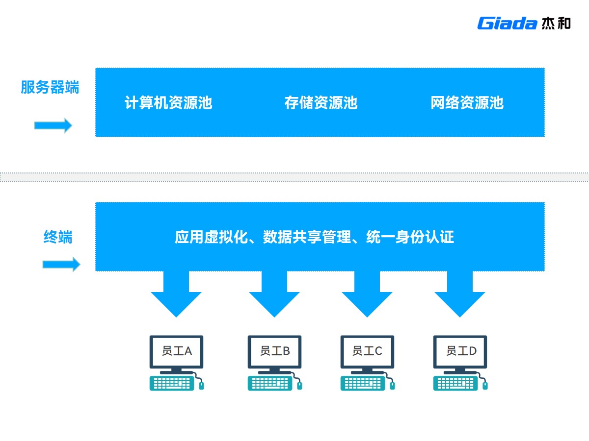 将操作系统安装在服务器上,应用程序和数据可以存储在本地终端,兼顾安全性和灵活性。