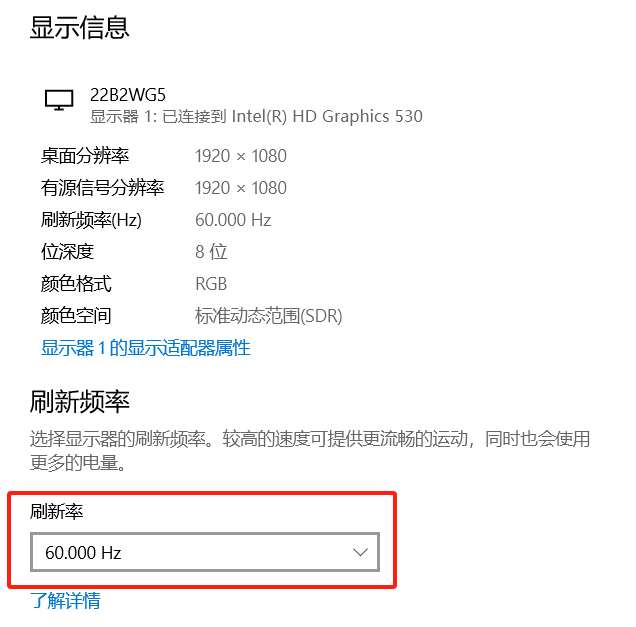 目前主流的显示器都具备60Hz的刷新率。
