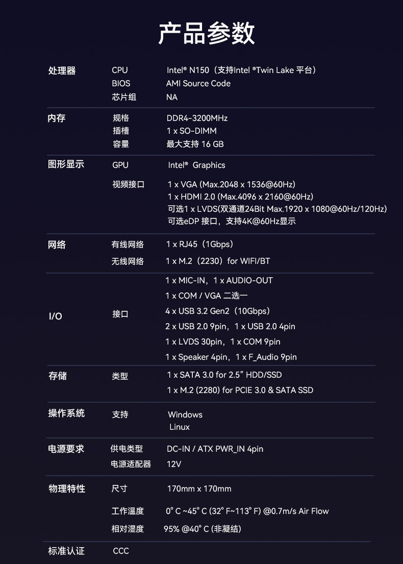 基于市场和客户需求,南宫NG·28(中国)相信品牌力量研发生产了搭载N150处理器的一体机主板CB4-209-V0,更适合办公、教育和娱乐需求。