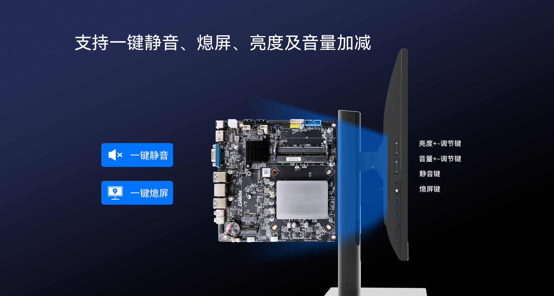 支持硬件一键静音,一键熄屏,音量加减,亮度加减